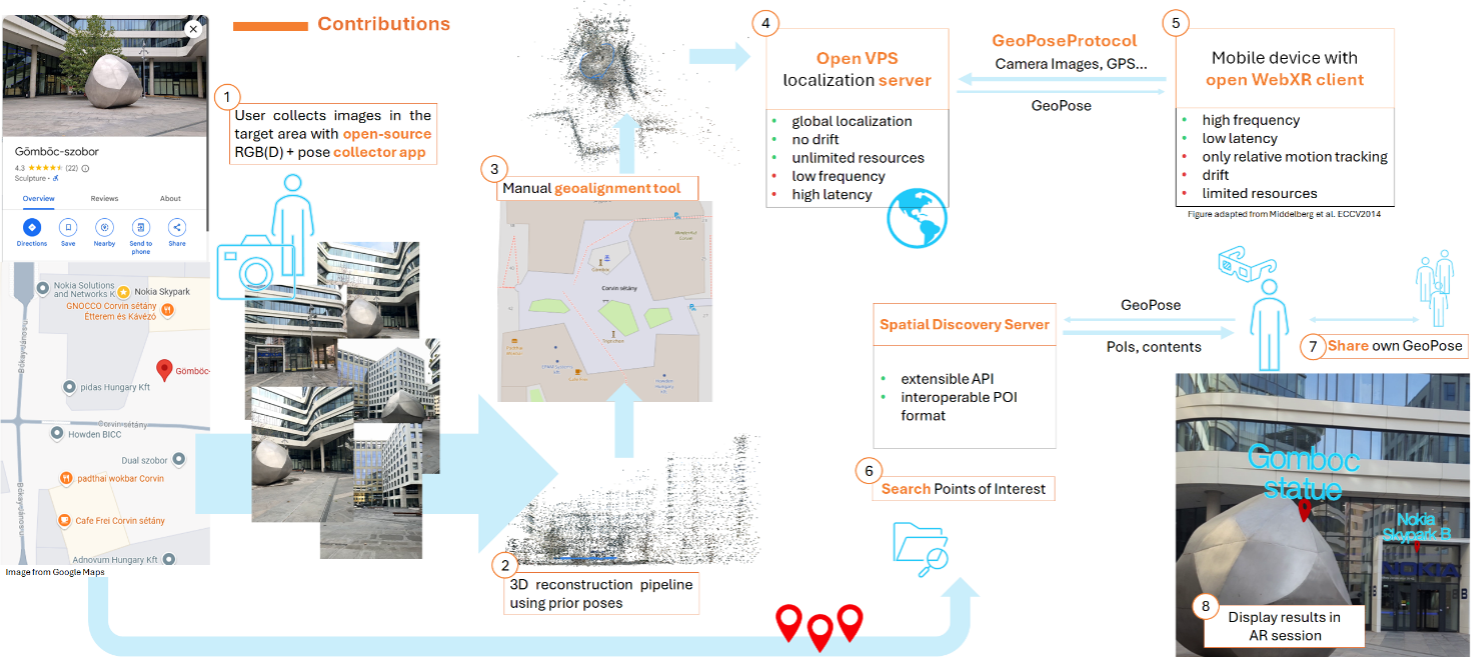 (1) An Open Visual Positioning Service (OpenVPS) including existing localisation algorithms and new user-friendly mapping tools.